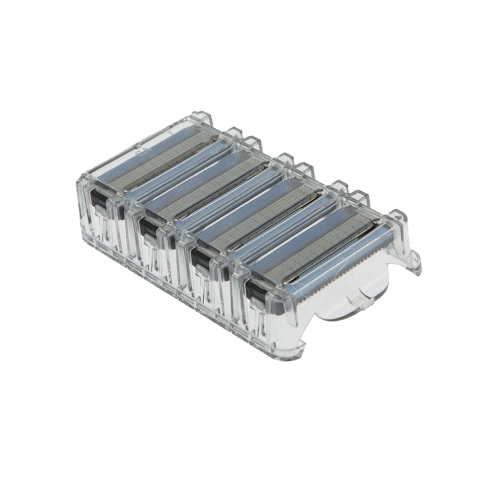هر تیغ در این بسته به ۵ لبه‌ی تیتانیومی دوپوششه مجهز است که با زاویه‌ای دقیق کنار هم قرار می‌گیرند. این طراحی، موهای صورت را به‌صورت یکنواخت قطع می‌کند و اصلاحی نزدیک به پوست ایجاد می‌کند. جنس تیغه‌ها از استیل ضدزنگ با روکش سرامیکی است که مقاومت بالایی در برابر رطوبت دارد و کندی تیغ را به‌طور محسوسی کاهش می‌دهد. این ویژگی، عمر مفید تیغه‌ها را افزایش می‌دهد و اصلاحی اقتصادی‌تر فراهم می‌کند.